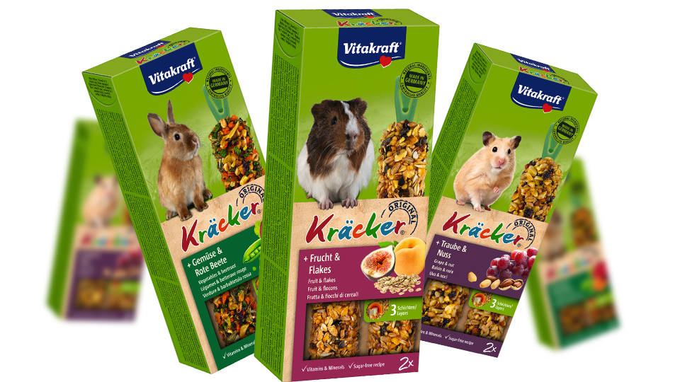Az eredeti Vitakraft Kräcker® rágcsálóeledel egyszerre kínál természetes ízeket és a fajtának megfelelő foglalkoztatást. A rágcsálóknak ugyanis meg kell dolgozniuk élelmükért a ropogós rágcsálórudakkal!
