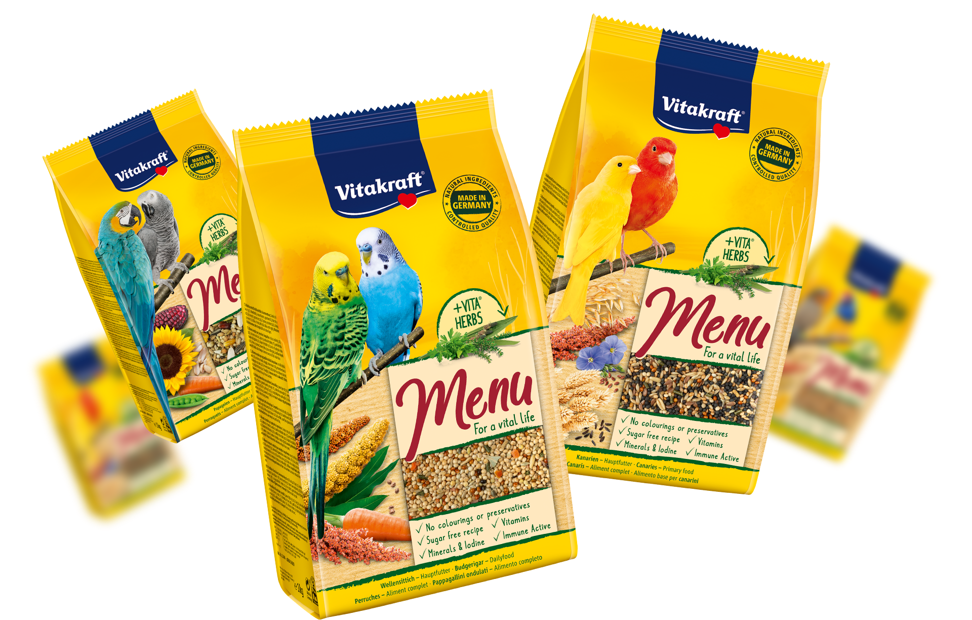 A madár Menü keverékek változatos és kiegyensúlyozott étrendet kínálnak a különféle papagáj fajok és a kanári madarak számára.
